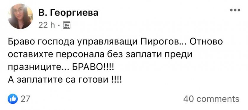 Поредната тъпота и безумство в страната - личният състав в една от най-елитните ни и значими лечебни заведения у нас - " Пирогов ", остана без заплати за великденските празници, научи Lupa.bg.