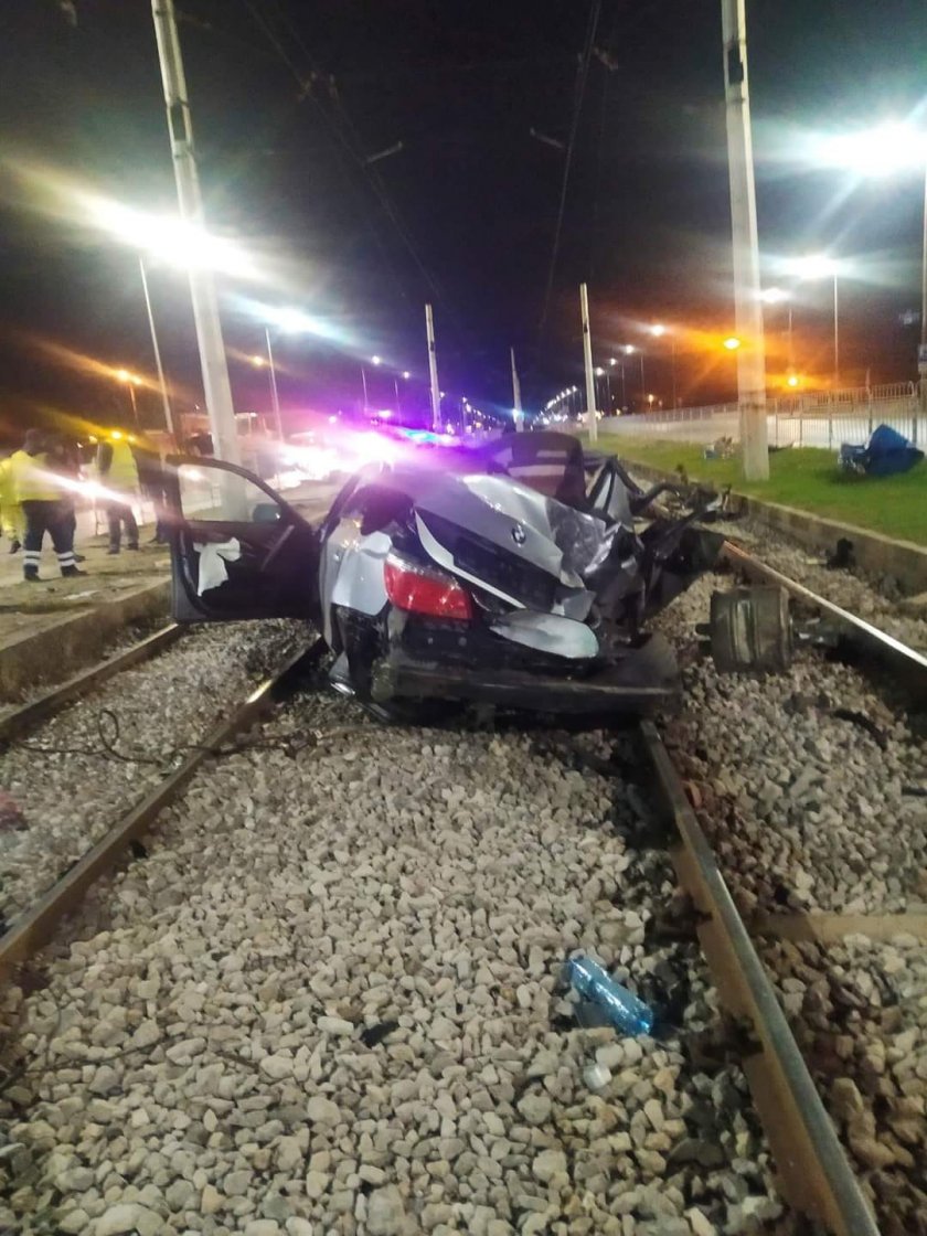 След конфликтът, който евентуално е породен от гонка сред колите, е помляна и спирката на трамвая, а едната кола е връхлетяла и на релсите.