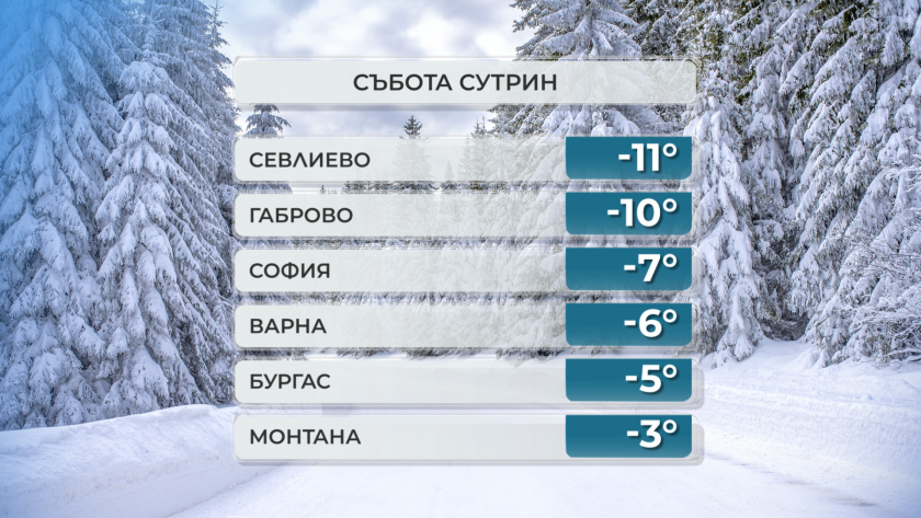 Поредно ледено студено утро с негативни температури в цялата страна - от минус 3° в Монтана до минус 10-11° в Габрово и Севлиево.