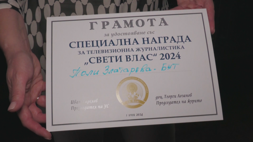 Поредно самопризнание за Българска национална телевизия. Водещата на " Още от деня " Поли Златарева получи специфичния приз на премиите за телевизионна публицистика " Свети Влас ".
