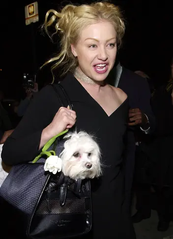 Порша де Роси и нейното куче " Бийн " идват на празненство, 2000 година в Лос Анджелис, Калифорния