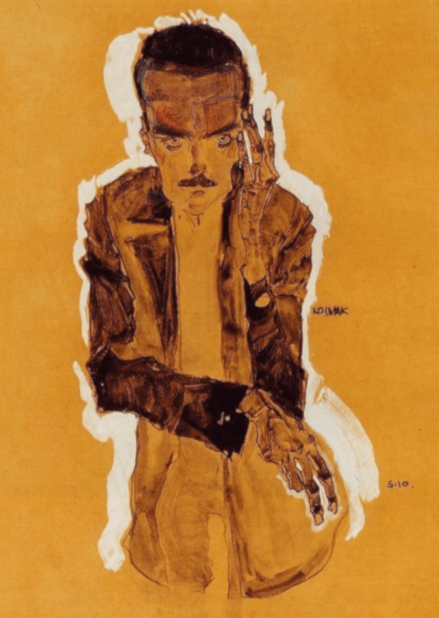 (Portrait of Eduard Kosmack with Raised Left Hand, 1910, by Egon Schiele)
