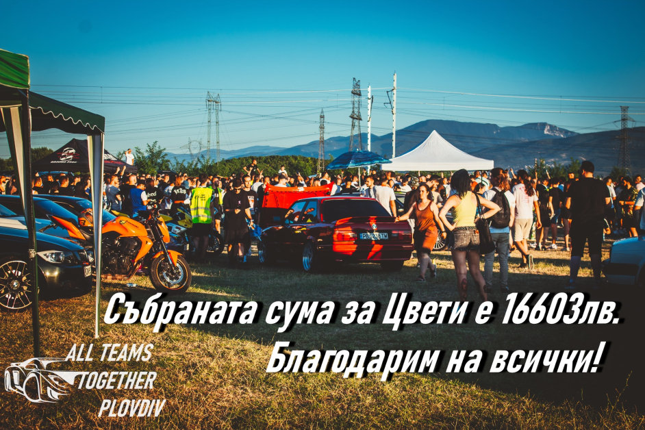 Посетителите на благотворителната автосбирка на групата All Teams Together събраха 16 603 лева в поддръжка на Цвети, която се бори с автоимунно заболяване. Събитието се организира през вчерашния ден на Kite Park Plovdiv.