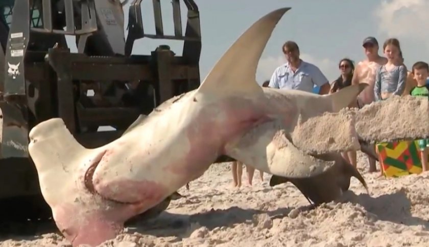 Посетителите на плаж във Флорида бяха шокирани, откакто се натъкнаха на 3,5- метрова и 250-килограмова женска акула чук, която била изхърлена на брега в Югоизточна Флорида.