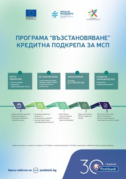Пощенска банка ще помага на бизнеса и чрез програма Възстановяване