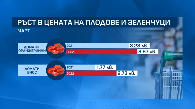 Значително се е повишила и цената на доматите - тя към този момент варира сред 2,70 и 3,70 лева за кг.