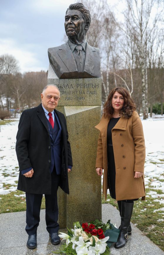 Посланикът на Съединени американски щати Херо Мустафа и водачът на Демократи за мощна България Атанас Атанасов поставиха цветя пред паметника на президента Рейгън, роден на 6 февруари 1911 година