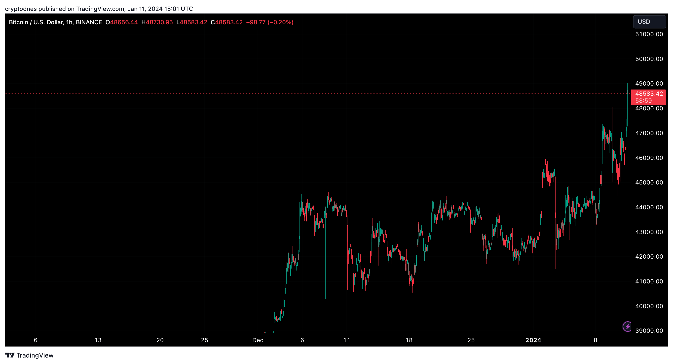 Цената на Биткойн доближи $49,000 – Еуфорията от одобрението на Биткойн ETF продължава