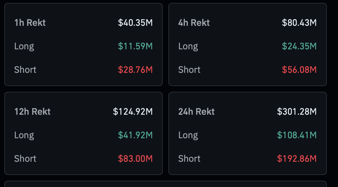 През последните 24 часа бяха премахнати 91,790 търговци, а общият размер на ликвидациите възлиза на $301.2 милиона.