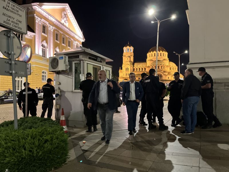 Последните депутати съумяха да излязат от Народно събрание минути преди среднощ. Председателят на Движение за права и свободи Мустафа Карадайъ и съпартиецът му Петър Чобанов си потеглиха тичайки, а Ангел Георгиев от " Възраждане " си викна контрапротестиращи, които да го пазят.