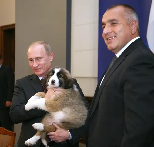 Борисов подари на Путин при визитата му в България в края на 2010 година българско овчарско куче. БУЛФОТО