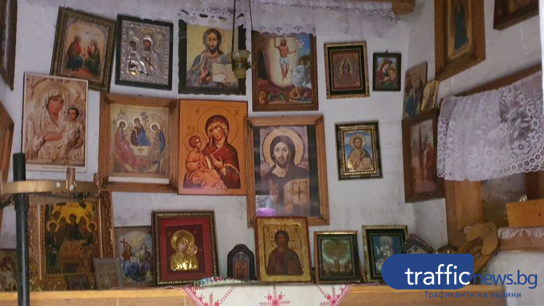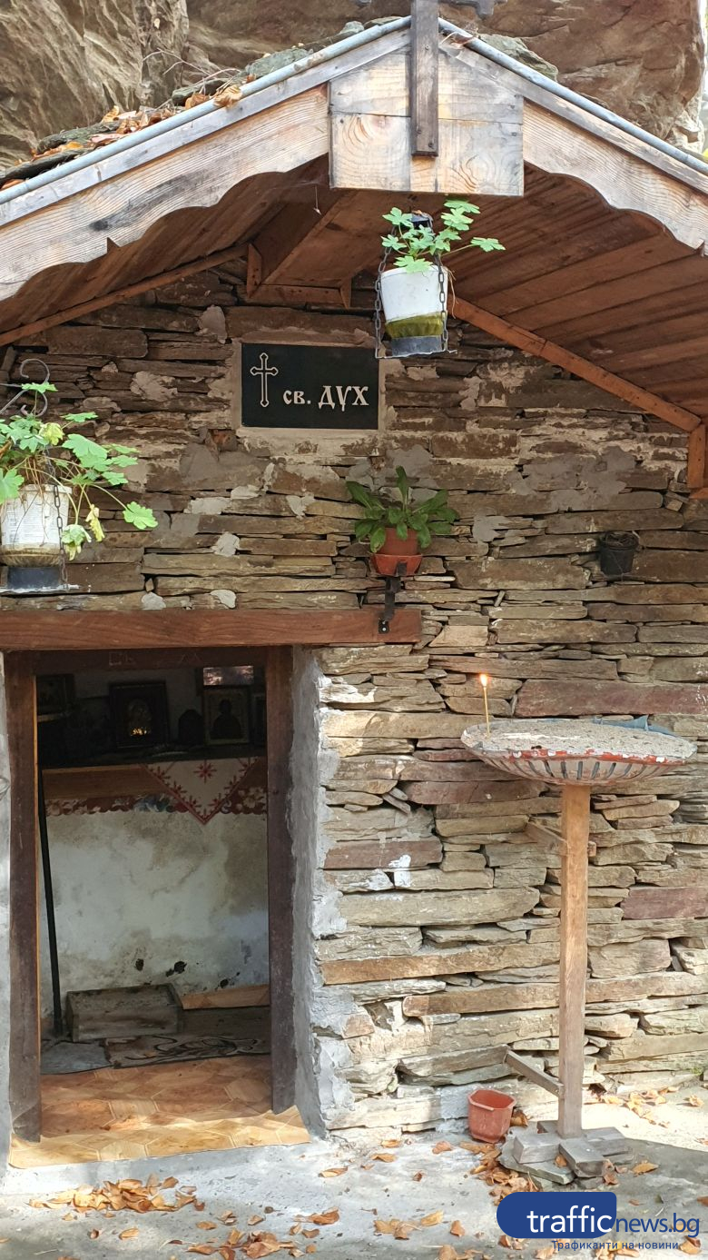 Свещници от дърво, камък и пясък са пазители на храмовата портичка. Малкият ѝ размер постанова възрастен да се наведе, правейки реверанс, като по този начин влиза преклонен в храма. Святата сграда е мъничка – за най-много двама души. Стените ѝ са безусловно покрити с икони, главно изобразяващи Божията майка и Исус Христос.