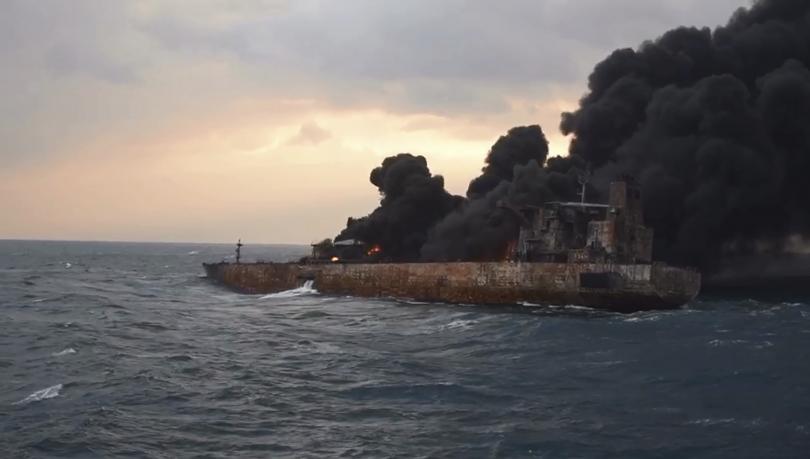Танкерът " Санчи ", пренасящ 136 000 тона кондензирани въглеводороди, се възпламени на 6 януари след конфликт с китайски товарен транспортен съд на към 300 км източно от китайския град Шанхай.