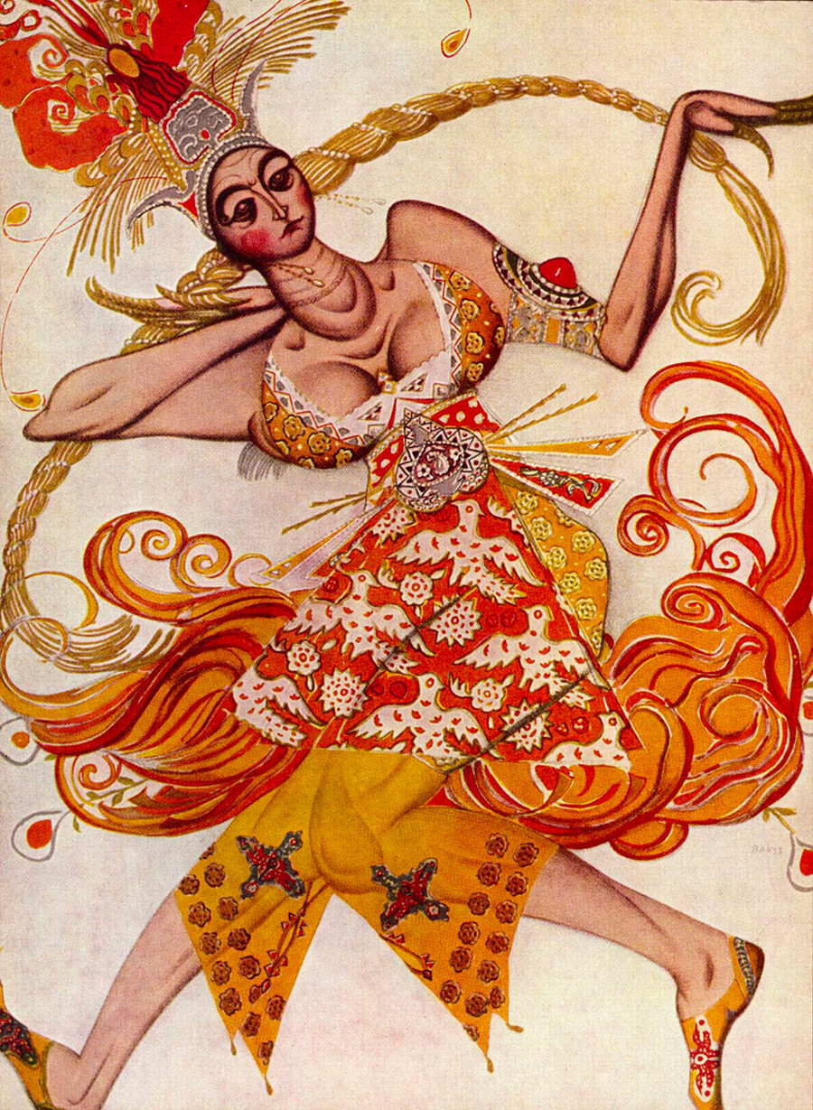 Избирателно към приказната тема се насочват и други художници. Известният сценичен художник Леон Бакст (1866-1924) изключително се популяризира с ескизите си към балета на Игор Стравински „Жар-птица“, чиято премиера се състои в парижката Гранд опера.