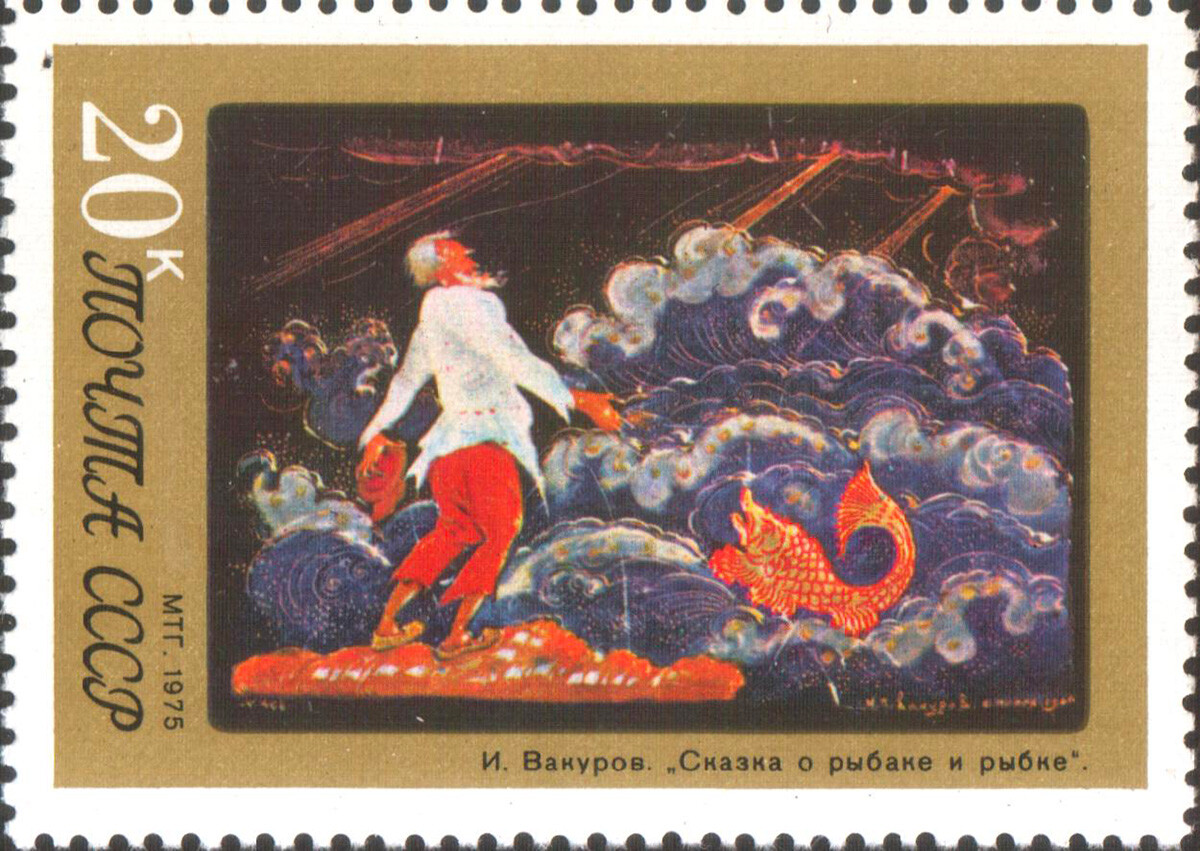 Иван Вакуров. „Приказка за рибаря и рибката“ (изображение на пощенска марка от 1975 г.)