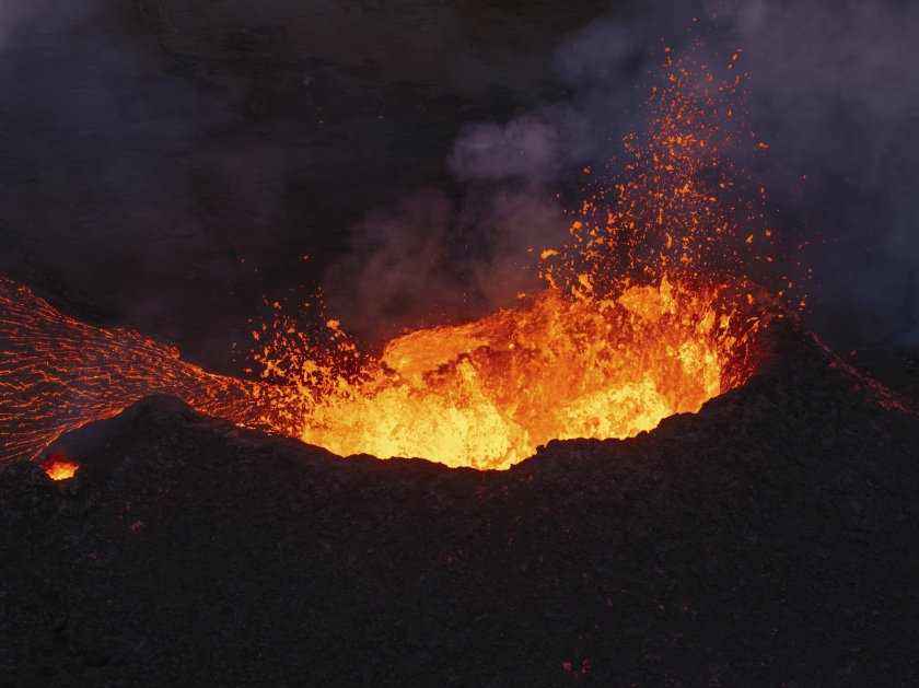 Потоци от лава след изригването на вулкан в Исландия. в близкия риболовен град Гриндавик. Затворен беше първокласен геотермален спа център. Това е четвъртото изригване на вулкана от декември до момента.