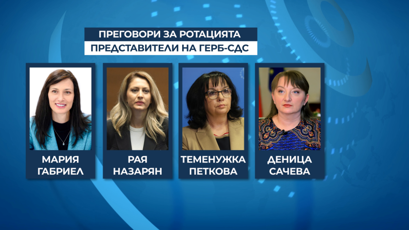 Освен нея от страна на ГЕРБ-СДС в диалозите вземат участие вицепремиерът и министър на външните работи в оставка Мария Габриел, както и заместник-председателите на парламентарната група Рая Назарян и Теменужка Петкова.