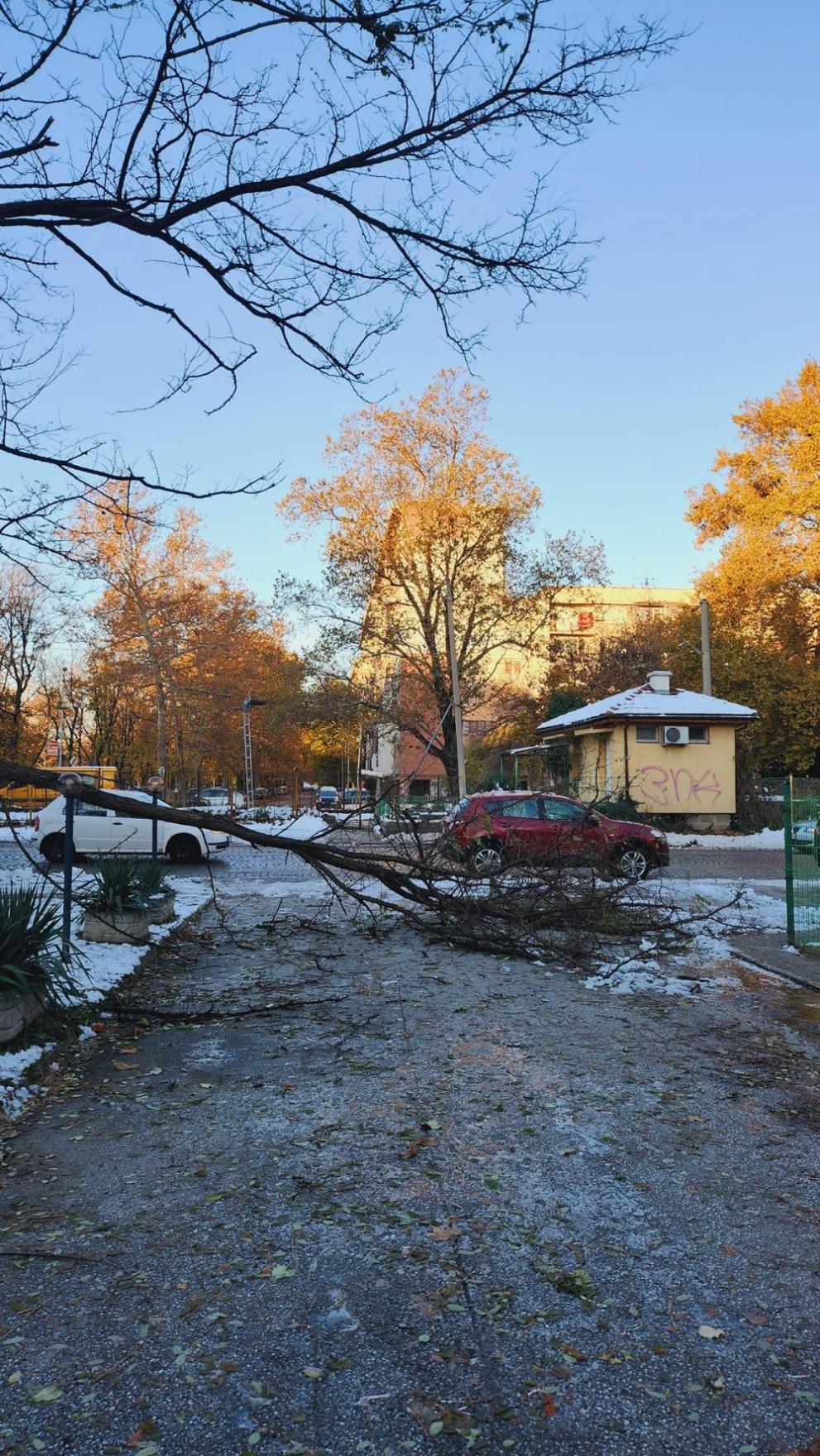 Пожарна Пловдив Листата по дърветата се задържаха по клоните поради топлото време, а снегът полепна по тях и натежа.