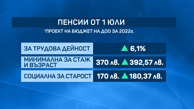 Увеличението е вследствие на осъвременяването на пенсиите, което се прави всеки юли. Тази година то ще бъде с 6,1%.Така минималната пенсия ще нарасне на малко над 392 лв., а обществената за напреднала възраст - на малко над 180 лв..