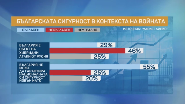 „ Това е дълбокото несъгласие в нашето общество. От една страна, желаеме да бъдем неутрални, а от друга – когато се стигне до директния избор да препотвърдим нашия геополитечски избор, се получава по този начин, че виждаме ¾ от българите биха дали своят вот „ за “ оставане в Европейски Съюз, а 60% поддържат оставането в НАТО, което е най-високият % от години насам “, разяснява социологът.