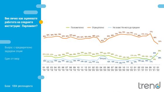Това записва първото национално представително изследване на „ Тренд “ за тази година, извършено по поръчка на 24 часа от 12 до 19 януари измежду 1004 пълнолетни жители посредством директно полустандатизирано изявление " лице в лице ".