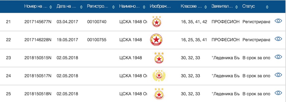Това обаче не е единствената драма около този проблем. Sportal.bg научи, че почитател на ЦСКА-София с букви Д.П. е пуснал молба до Патентното ведомство, с която желае изтриване на емблемата на ЦСКА. Мотивът му е, че банкрутиралият ПФК ЦСКА не я е употребявал в продължение на 5 години. Това към този момент е оборено от синдик Дора Милева, защото тя е потвърдила, че ЦСКА завоюва Купата на България през 2016 година точно с въпросната емблема на гърдите си, а по това време клубът е разпространявал и сувенири с нея.