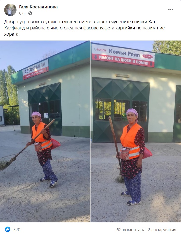 Появи се пост-похвала в обществената мрежа фейсбук, в който потребителка хвали една от работничките на Община Пазарджик, която почиства улиците.