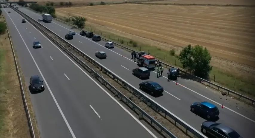 Както към този момент съобщихме, злополуката е станала към 9:20 ч. в региона на с. Шишманци. След конфликта придвижването по автомагистралата беше съществено затруднено, като се образува колона от коли, дълга над 6 километра.
