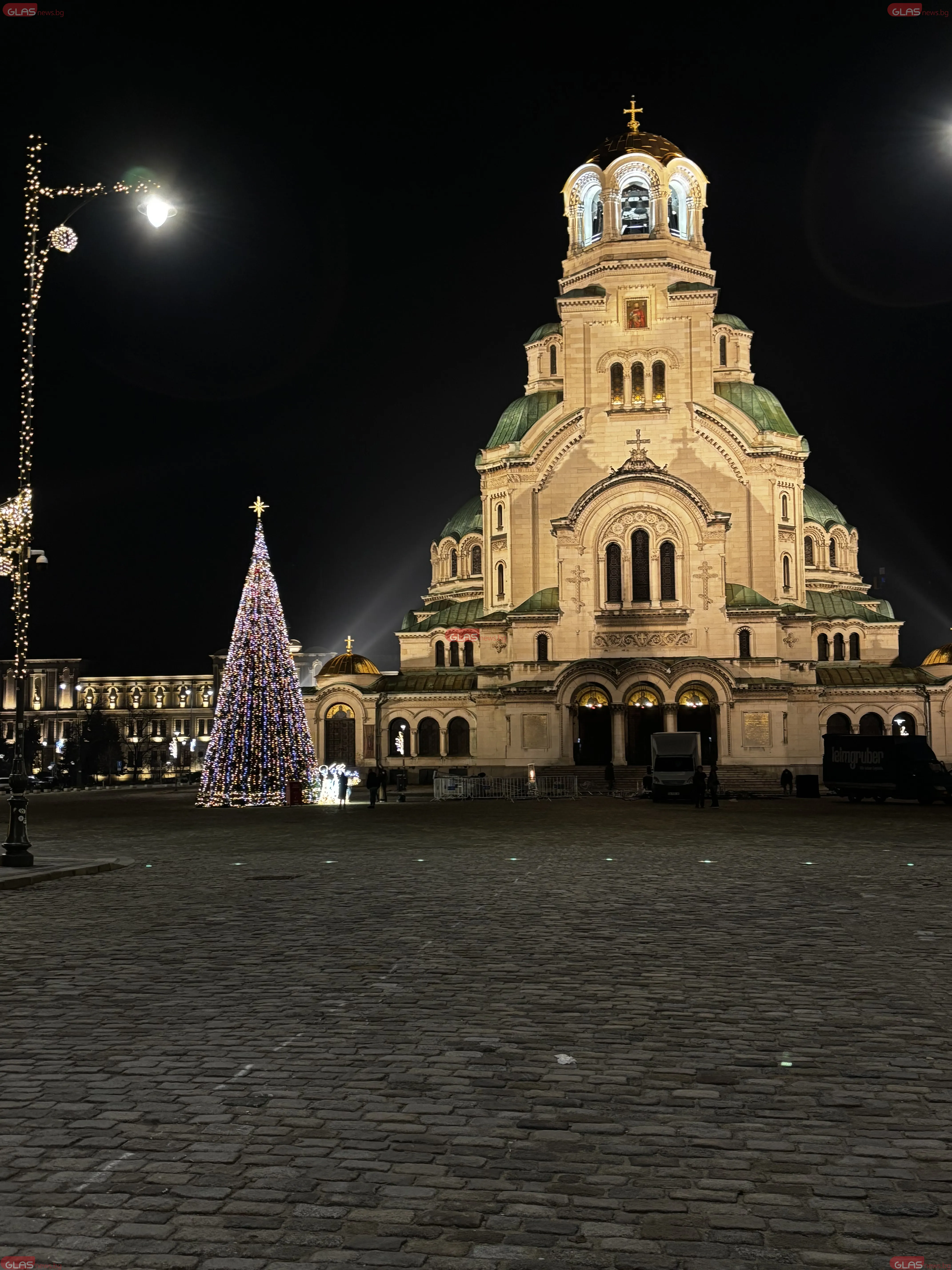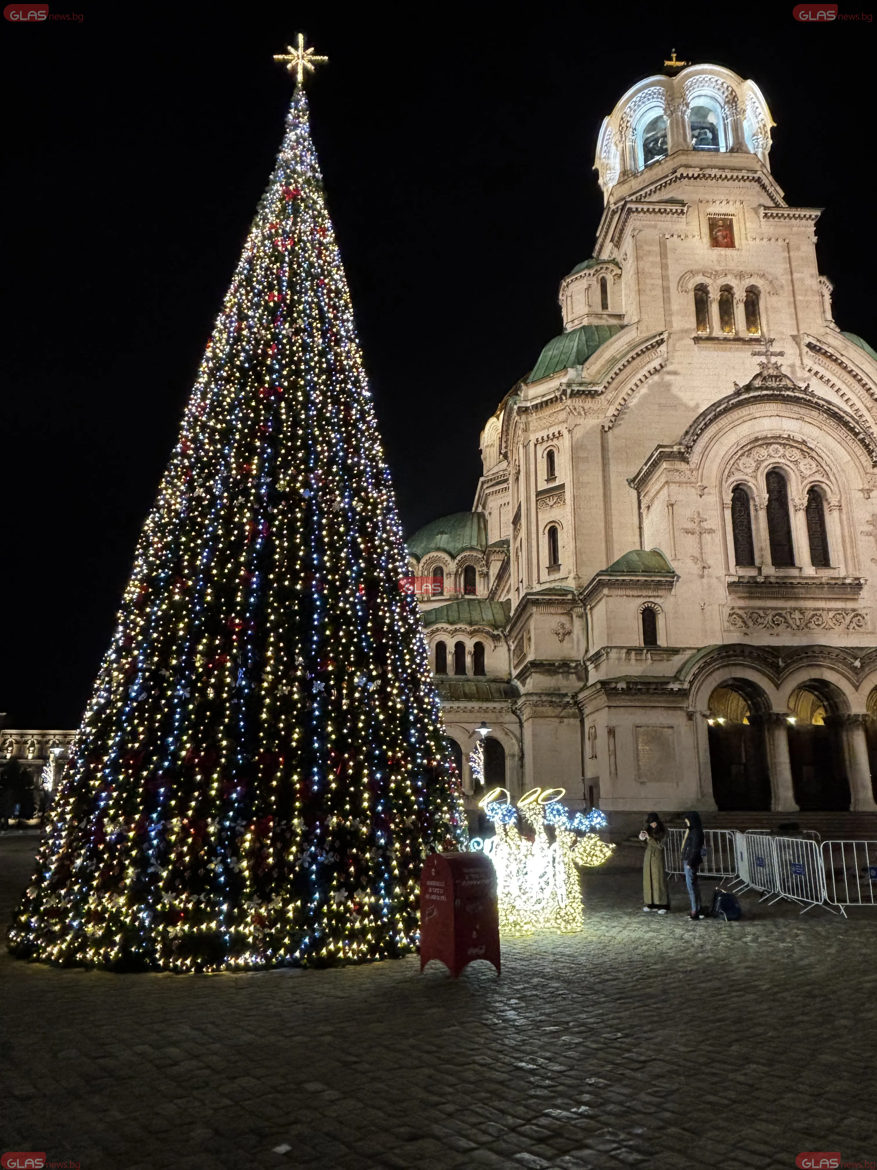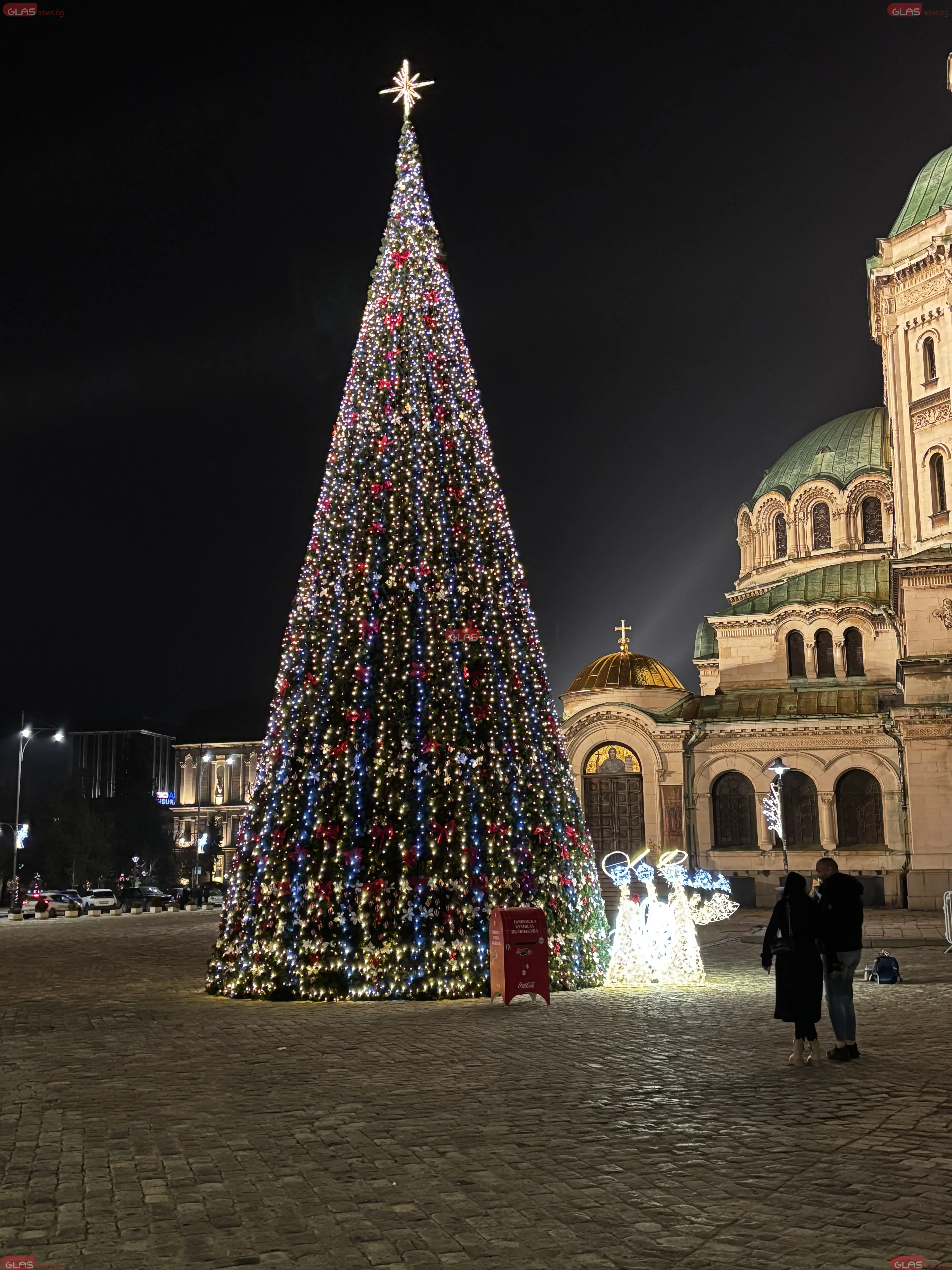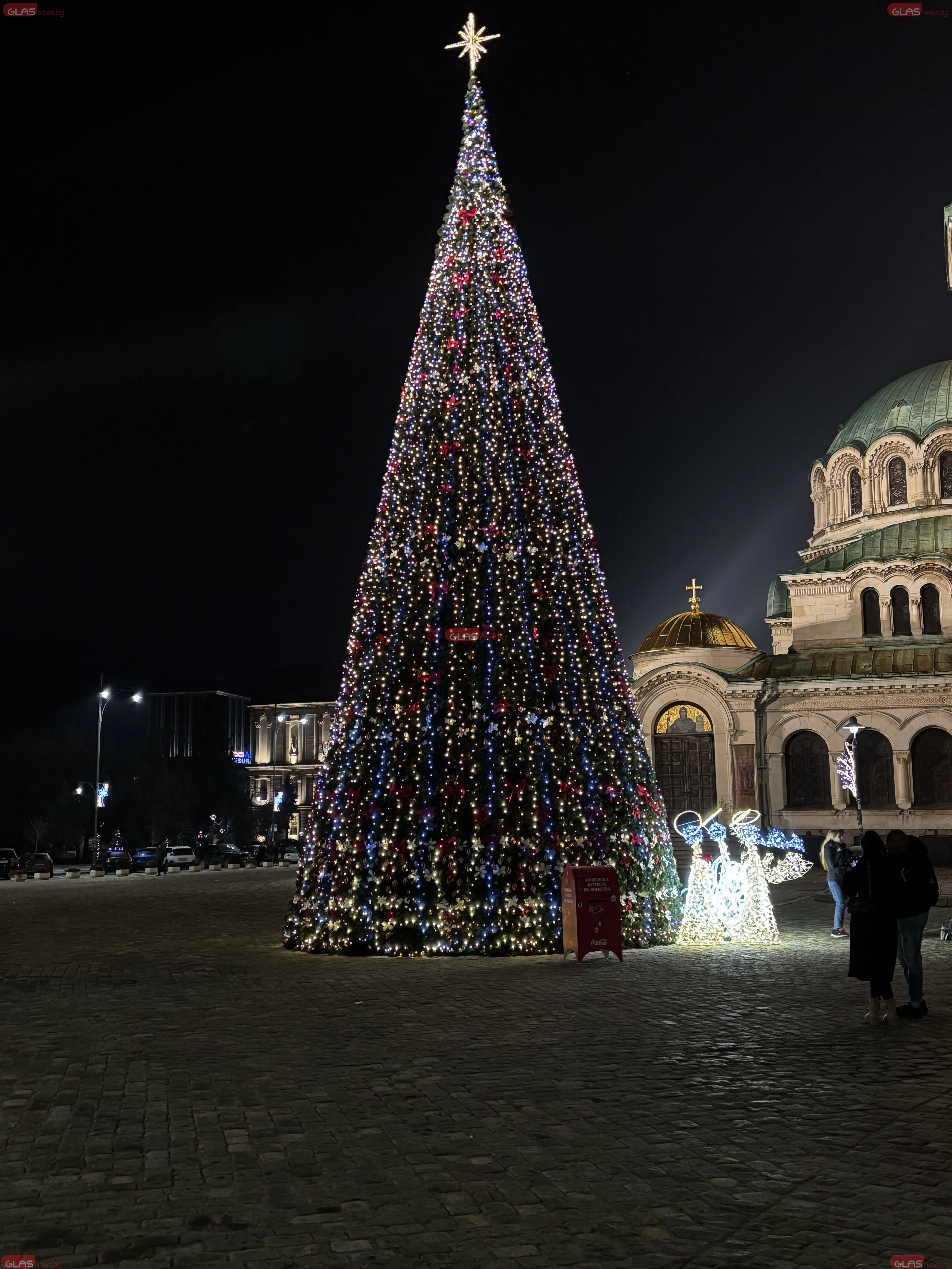Празничната елха на София в сърцето на града – на площад „ Св. Александър Невски “ – блестна в хиляди светлини.