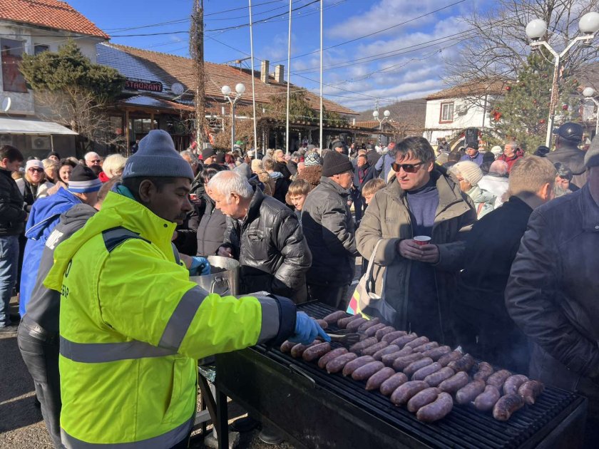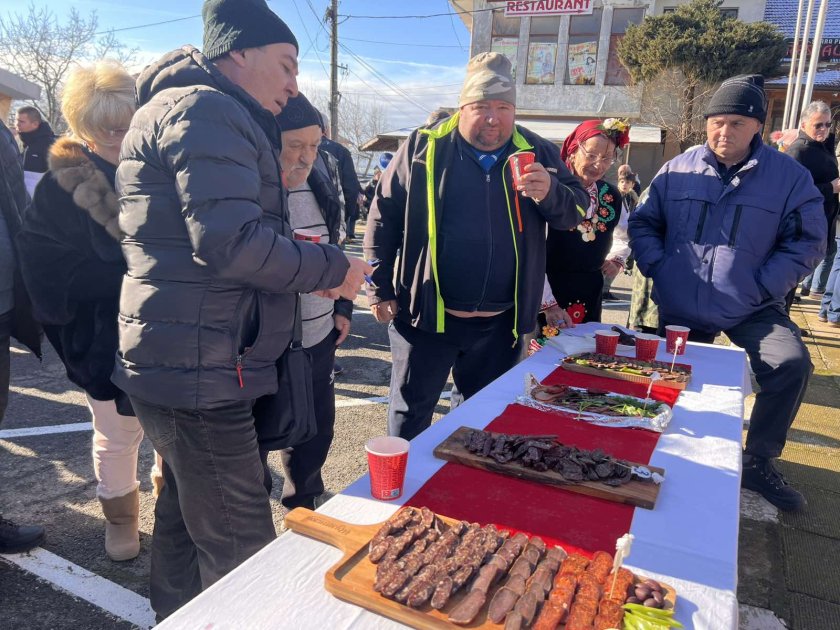 Селският площад се трансформира в същинска национална софра – с мирис на печена наденица, греяно вино и положително въодушевление.