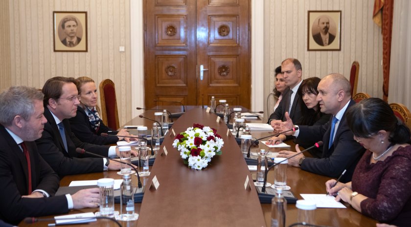 Президентът Румен Радев и еврокомисарят по разширението Оливер Вархеи се срещнаха на " Дондуков " 2 като хора, които работиха по формулата 1+5, издигнала в приоритет вписването на българите в Конституцията на Република Северна Македония и отворила пътя на страната към Европейски Съюз. Президентът подсети, че Скопие не е извършил към момента главният си ангажимент.