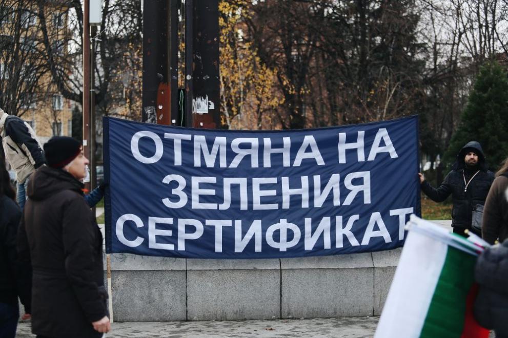 БГНЕС Протестиращите са срещу влизането на публични места със зелен документ.