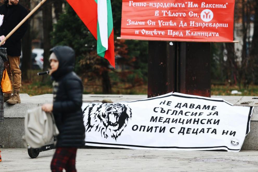 Пред пилоните на НДК се събраха хора на митинг против зеления документ .