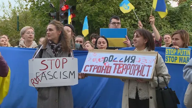Пред съветското посолство в София се събраха украински жители, с цел да стачкуват против днешните масирани против Украйна.