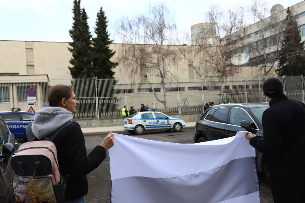 Пред съветското посолство в столицата се събраха протестиращи, с цел да изразят солидарността си с украинския народ и да осъдят съветската експанзия, съобщи БГНЕС. На 24 февруари се навършва тъкмо една година от войната на Руската федерация в Украйна.