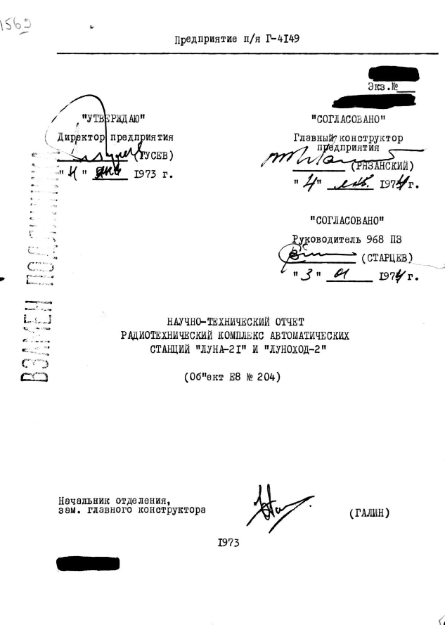 В отчета също се приказва и за приключването на работата на " Луноход-2 ". На 503-ия сеанс на връзката температурата вътре в апарата се е повишила до 43-47 градуса. След това луноходът не е установявал връзка.