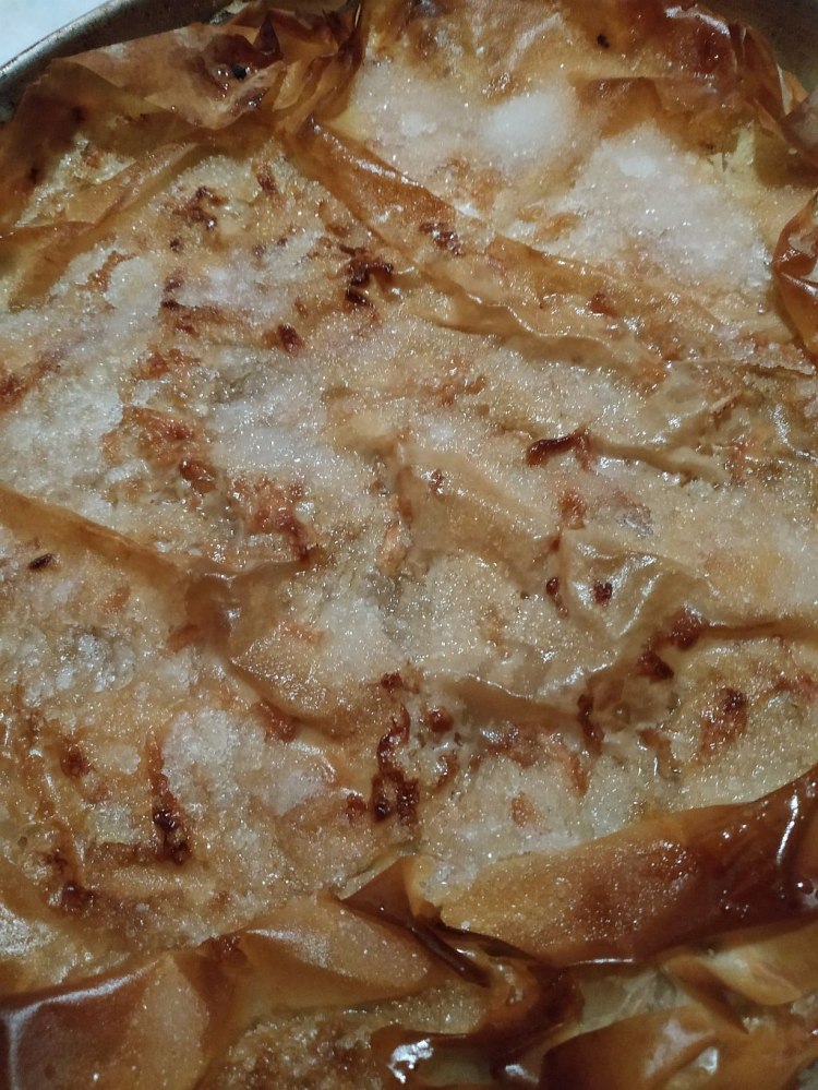 Така наподобява нашият щрудел с ябълки и бисквити, стана доста апетитен, като е изключим, че е дооооооста сладостен. Така че в случай че не обичате доста сладко, сложете по-малко захар от нас.