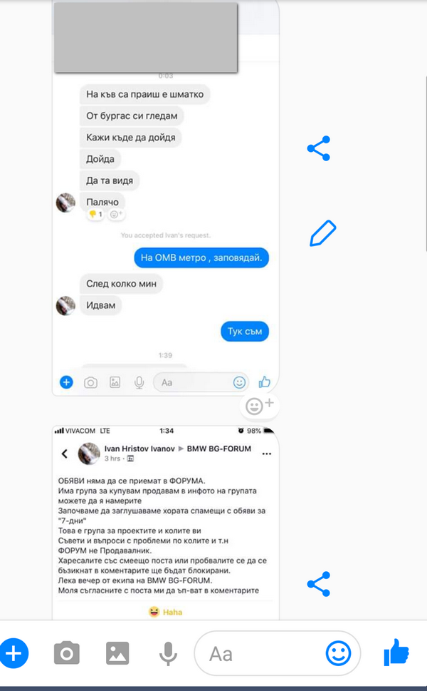 Това е постът в БМВ форума, който се оказва единствената причина за нападателната реакция на Иван