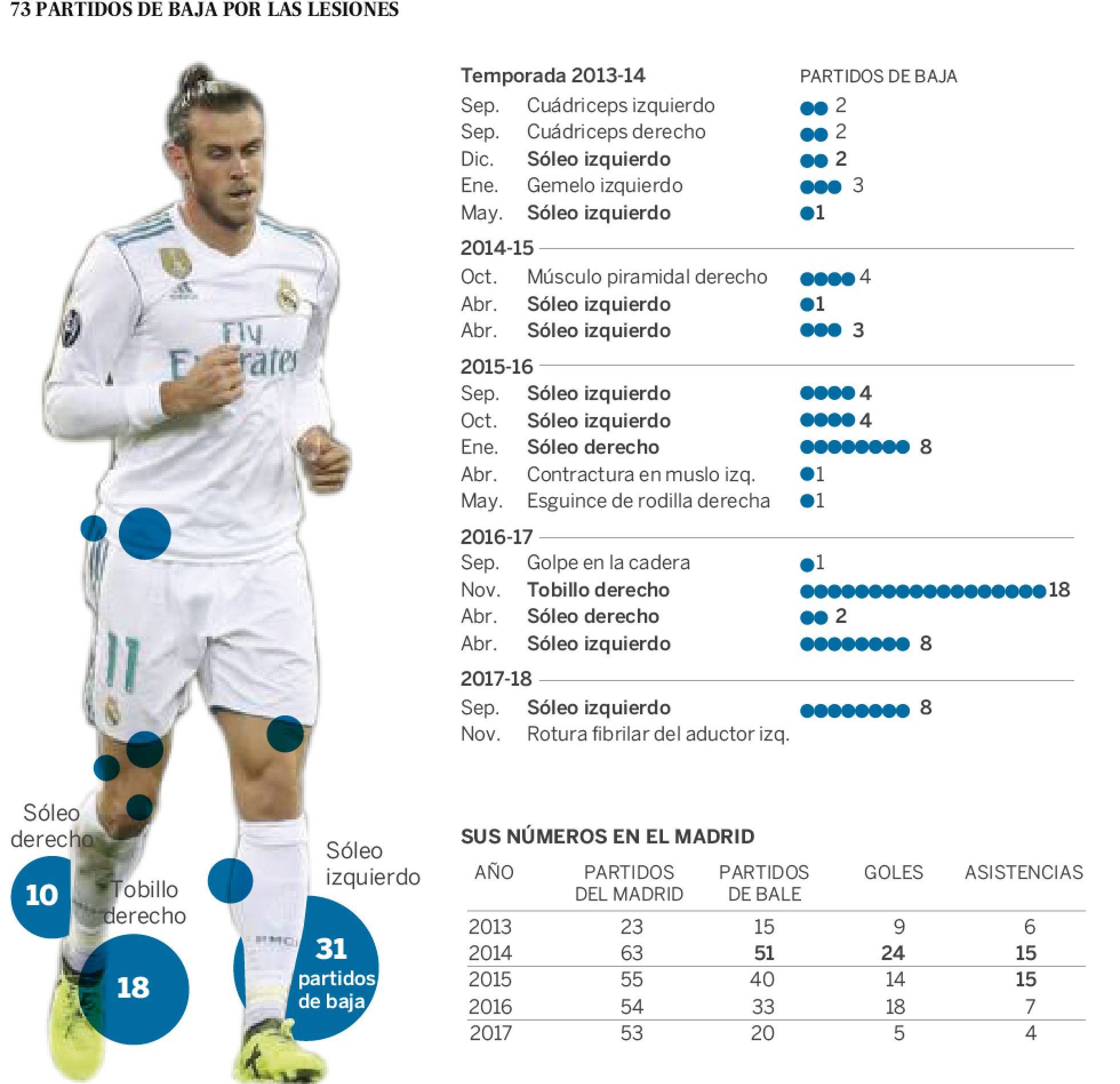 Тя стартира със самото му идване в Мадрид и изключително се задълбочи от септември 2015 година насам. В първите си два сезона играчът пропусна 18 мача поради мускулни проблеми, а от този момент насетне – двойно повече, 36, като цифрата ще нарасне най-малко до 44, преди 2018 година да е изтекла.