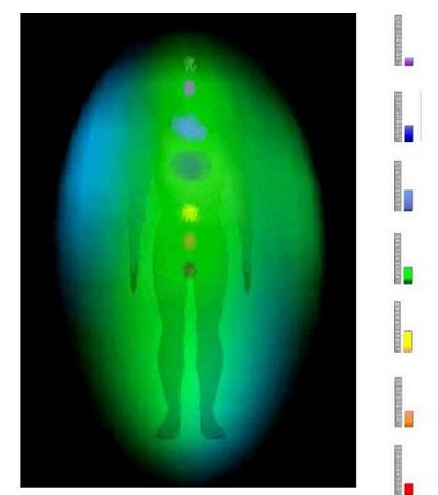 Фиг. 1 Аурата е синьо-зелена, с размер 50 см, демонстрира мощен дисбаланс в ин и ян силите.