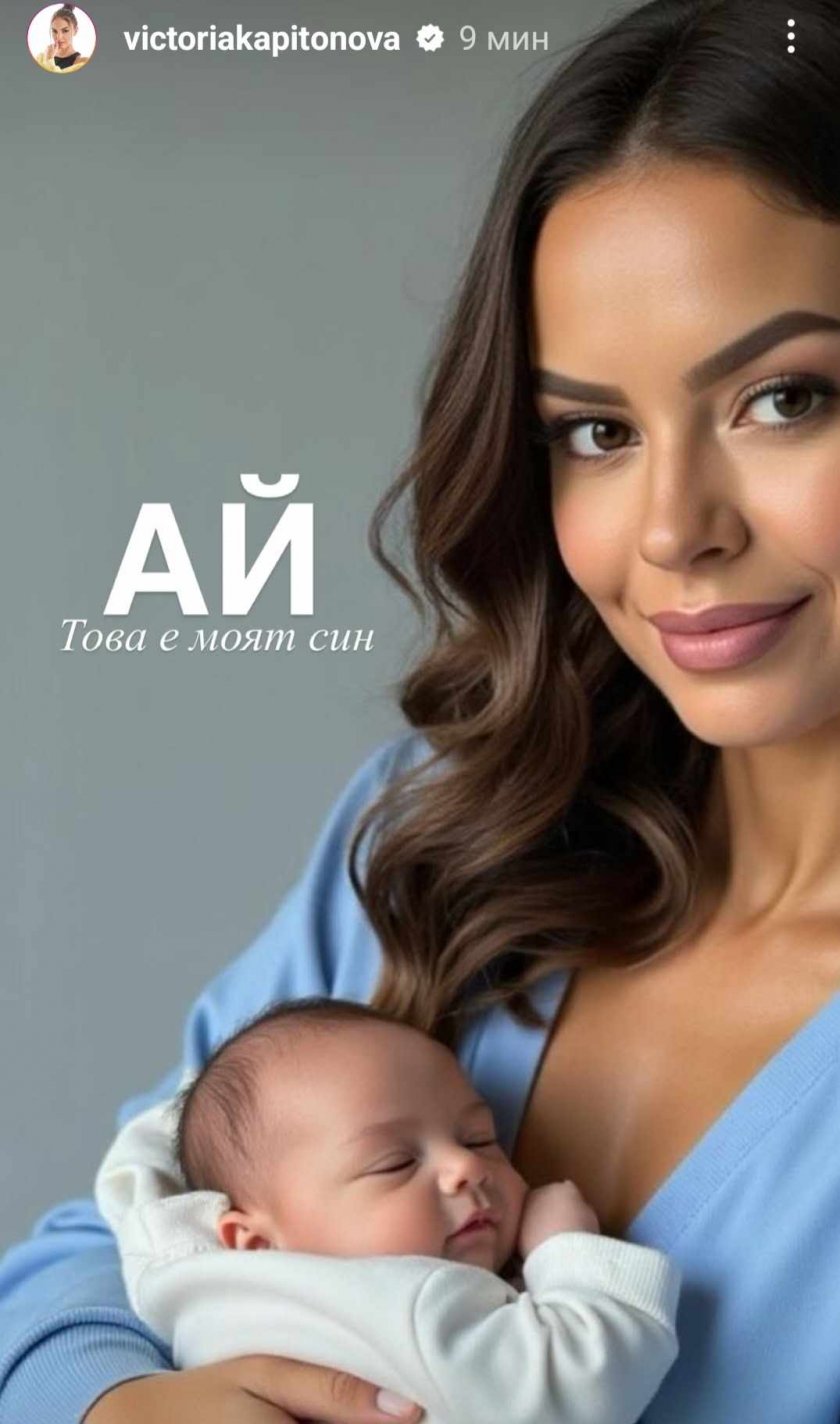 Преди минути интернет звездата Виктория Капитонова се похвали, че е родила наследник, който е кръстила Ай. Рускинята пусна фотография с бебето, както и такава с стомах, с цел да убеди почитателите си, че е била бременна. Уви, инфлуенсърката не е станала майка, а е " забременяла " от изкуствен интелект. Снимките са направени с изкуствен интелект и не са действителни, увери се Lupa.bg.