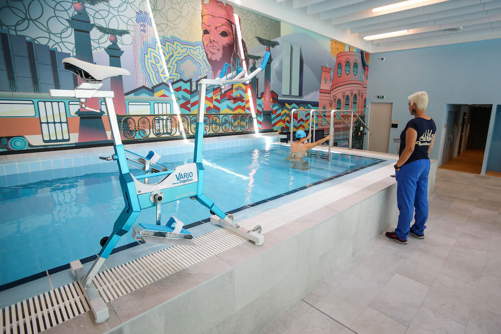 “Басейнът е със солена вода и това е доста щадящо за организма. Водата понижава килограмите и форсира възобновяване. Тук можем да използваме подводните колела като способ за оживление. Фитнес залата насреща е цялостна с всевъзможни мултифункционални машини, в това число и затворена писта за тичане, и по този начин не сме подвластни от времето на открито. Всичко това ни разрешава да осигурим на нашите пациенти доста повече от апаратно лекуване. Ние сме до тях от ранна постоперативна фаза до съвсем цялостното възобновяване и завръщането им на терена. Всъщност, нашите пациенти не са единствено спортисти. Помагаме и на хора с битови контузии, дилетанти, на възрастни и деца. Най-малкият ни пациент беше на 8 месеца, а най-големият, на 92 години. Истината е, че българинът спортува доста и има предпочитание да се движи, само че от време на време му липсват знания и това води до травми”.