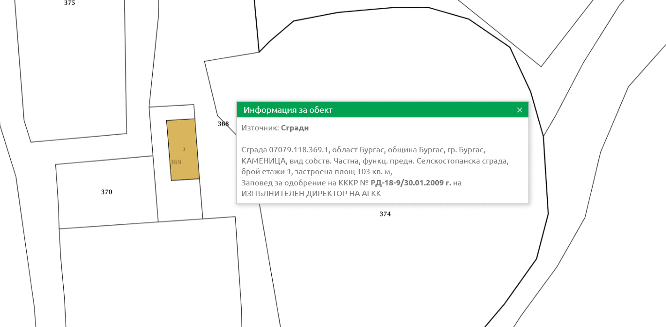 Преди време от са подали сигнал за хипотетичен противозаконен градеж в Бургас . Причината е, че в Кадастъра с кадастрален номер 07079.118.369.1 се води селскостопанска постройка на един етаж , със застроена повърхност от 103 квадратни метра. Къщата се намира в комплекс „ Меден рудник “.