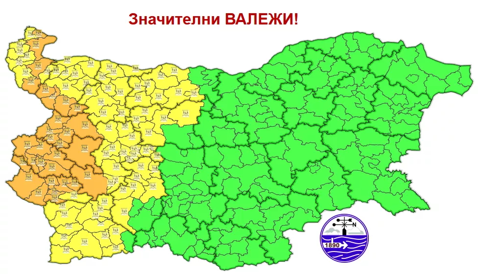 Обявени са предупредителни кодове - жълт и оранжев – за обилни превалявания в Западна България.