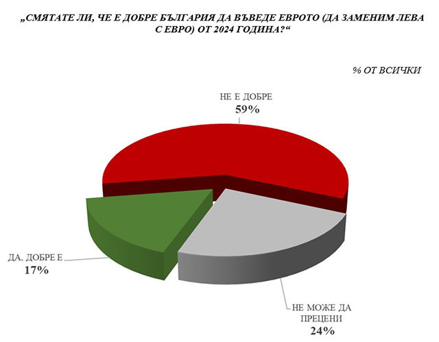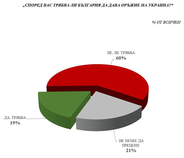 Както във връзка с влизането в еврозоната, по този начин и по въпроса за даването на оръжия за Украйна обществото като цяло е очебийно отрицателно настроено. Данните демонстрират, че двете тематики тясно се преплитат. От едната страна са поредните „ евроатлантици “ (около 20 %) – които желаят както да предоставяме оръжие за Украйна, по този начин и да въведем незабавно еврото. От другата страна са „ евроатлантико скептиците “ (около 60%) - които считат, че България, сега, би трябвало да се дистанцира от сходни придвижвания (както във връзка с оръжията, по този начин и във връзка с еврозоната).