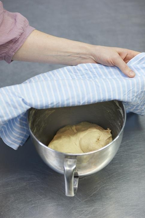 Покрива се купата с влажна забрадка и се оставя на топло да втаса 1 час.