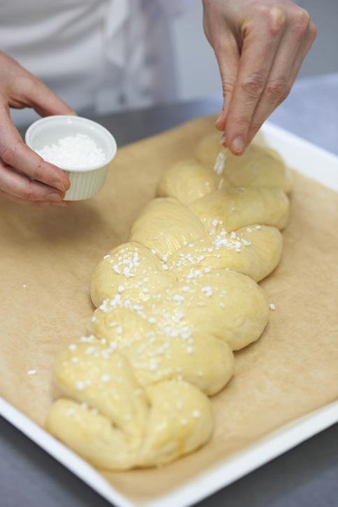 Предлагаме в 5 стъпки нещо по-различно – не просто бърз за омесване, а лек козунак като съставки. Но съвършен на усет, издигнат още повече с рисково прекарване – поръска от морска сол като контрапункт на захарта, с което сладостта се усеща отчетливо. Все отново, в случай че предварителното чувство е за нещо прекомерно новаторско, поръсете козунака с едра захар.