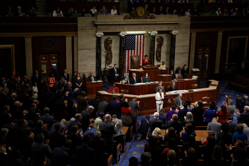 „ Американската народна власт е величествена, само че нежна. Много от нас тук станаха очевидци на тази чупливост от първа ръка, и то за жал, тъкмо тук в тази зала. Демокрацията би трябвало да бъде защитавана непрекъснато от силите, които желаят да ѝ навредят ”, съобщи Пелоси, намеквайки за щурма против Капитолия предходната година от последователите на някогашния президент републиканец Доналд Тръмп.