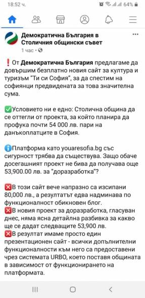 И прочее, най-после благодаря Демократична България. От цялото им безсмислено говорене има нещо хубаво – платформата „ Ти си София “ няма да има потребност от реклама! Направиха я гратис!