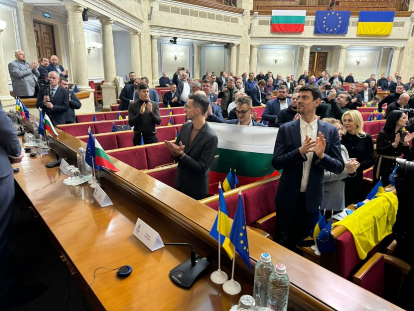 Първата спирка от формалното посещаване на българската делегация беше Върховната Рада, където Желязков разговаря с украинския си колега Руслан Стефанчук.